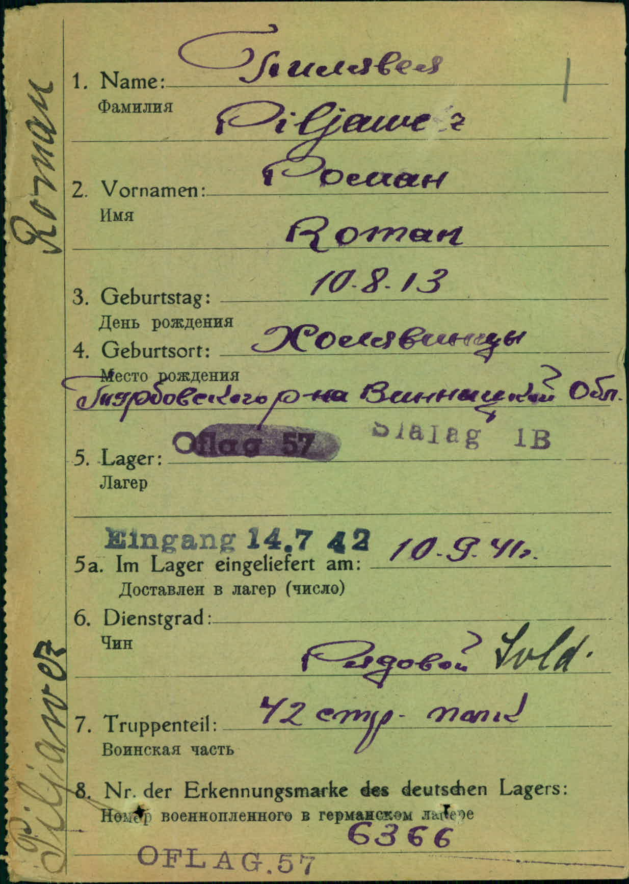 Военнопленные, трофейные карточки. Винницкая обл.