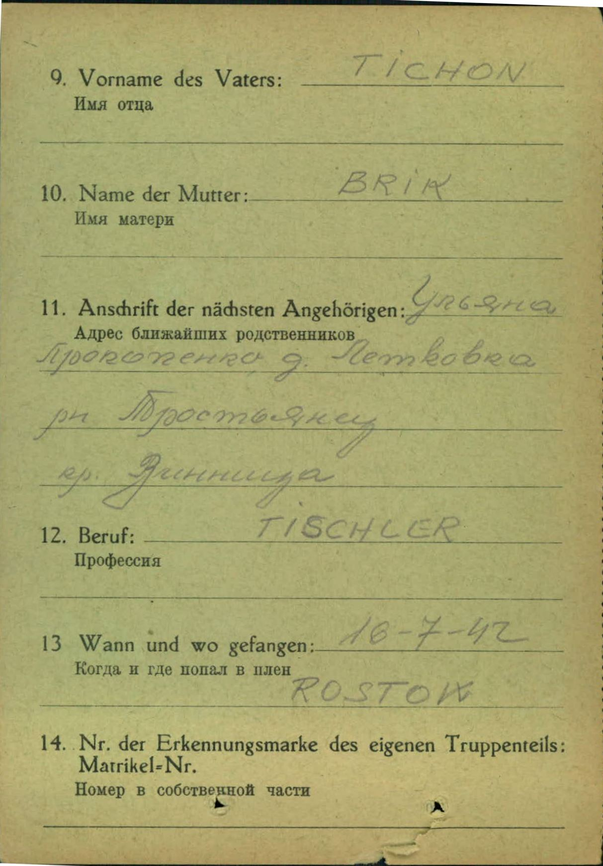 Военнопленные, трофейные карточки. Винницкая обл.