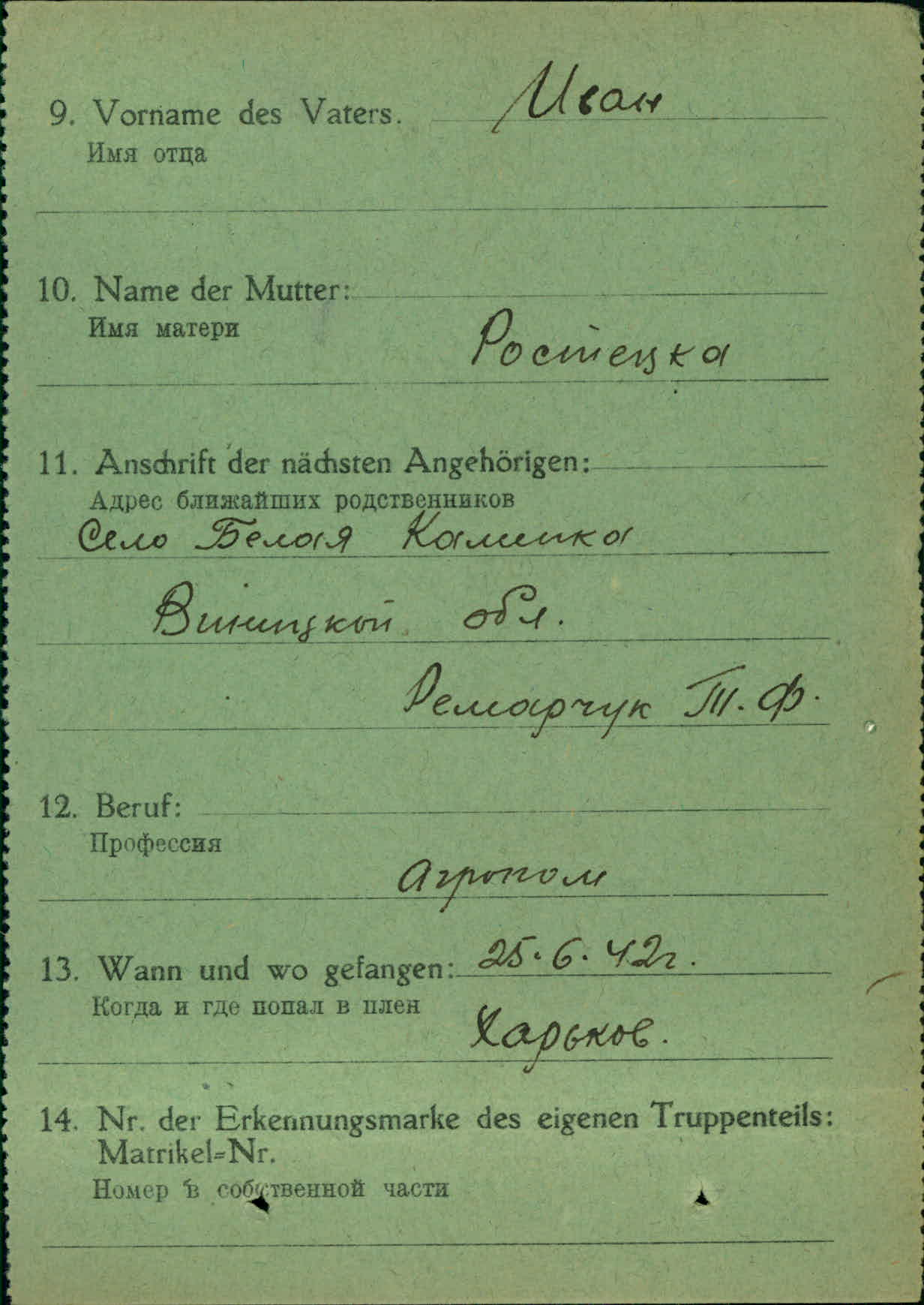 Военнопленные, трофейные карточки. Винницкая обл.