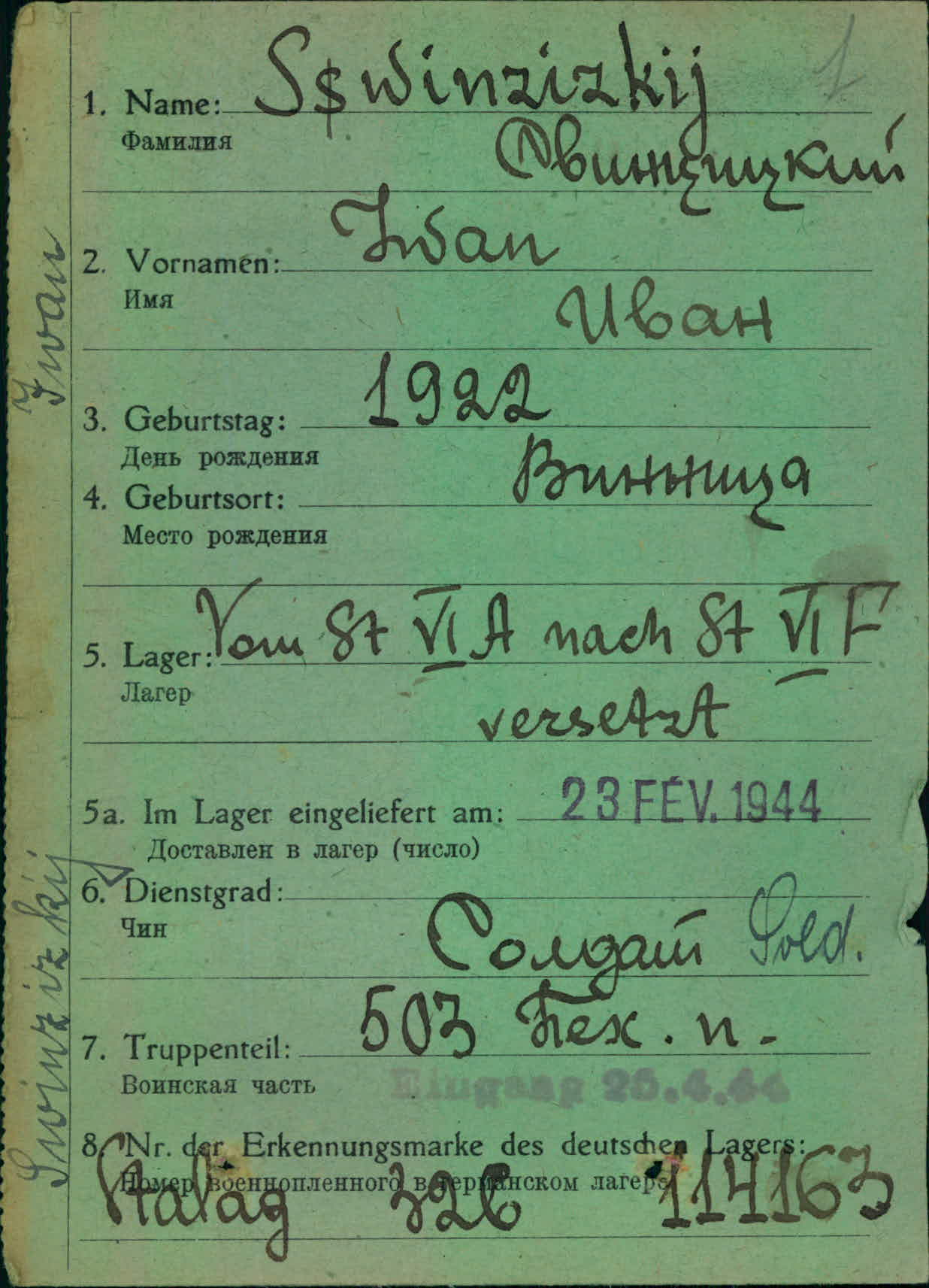 Военнопленные, трофейные карточки. Винницкая обл.