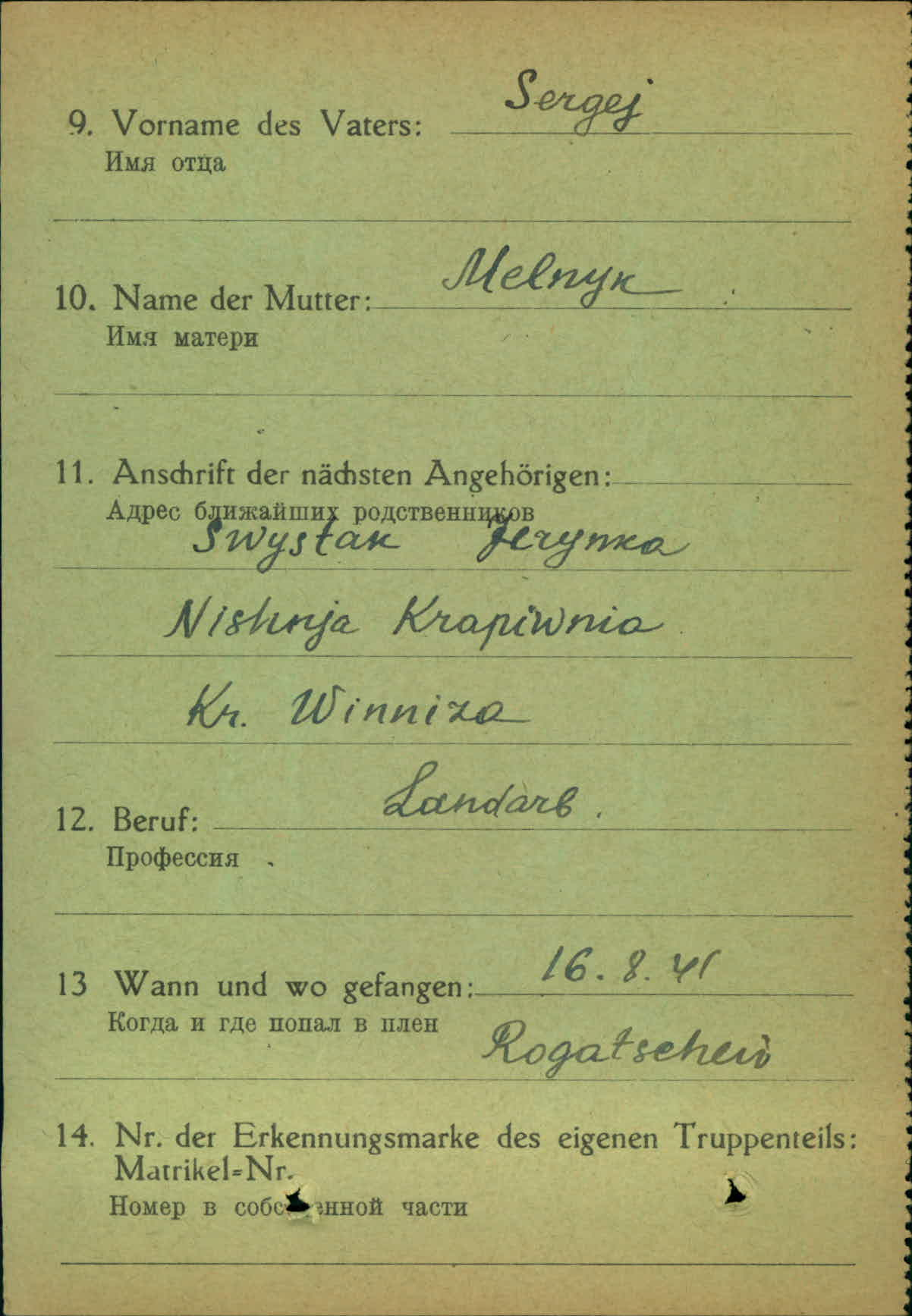 Военнопленные, трофейные карточки. Винницкая обл.