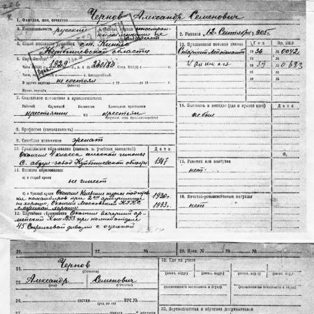 Чернов Александр Семенович, 12.09.1905 г.р. Куйбышевская обл., ст. Кинель. Капитан, последнее место службы - штаб Юго-Западного фронта. С июля 1941 г. по май 1942 г. скрывался в с. Волынка Сосницкого района Черниговской обл. у своей тещи, Скирта Степаниды Степановны. В мае 1942 г. вместе с другими бывшими военнослужащими был забран немцами и направлен в г. Чернигов на работы. Дальнейшая судьба неизвестна (ЦАМО ф. 33 оп. 594263 д. 104).