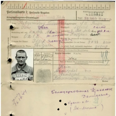 Белоцерковский Иван Иосифович, 11.11.1912 г. р. г. Ак-Мечеть (Черноморское), Крым. Красноармеец, строевой. Попал в плен в боях за Крым 9.05.1942 г. Лагерь шталаг XI A, лагерный номер 125312. Погиб в плену 16.10.1944 г. Похоронен в г. Алексисдорф, Германия.