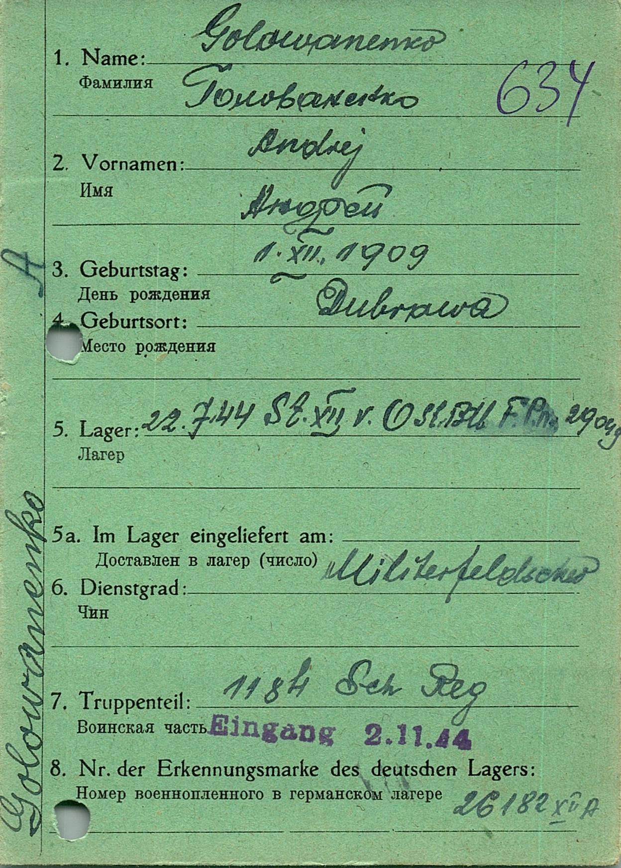 Военнопленные, трофейные карточки. Киевская обл.