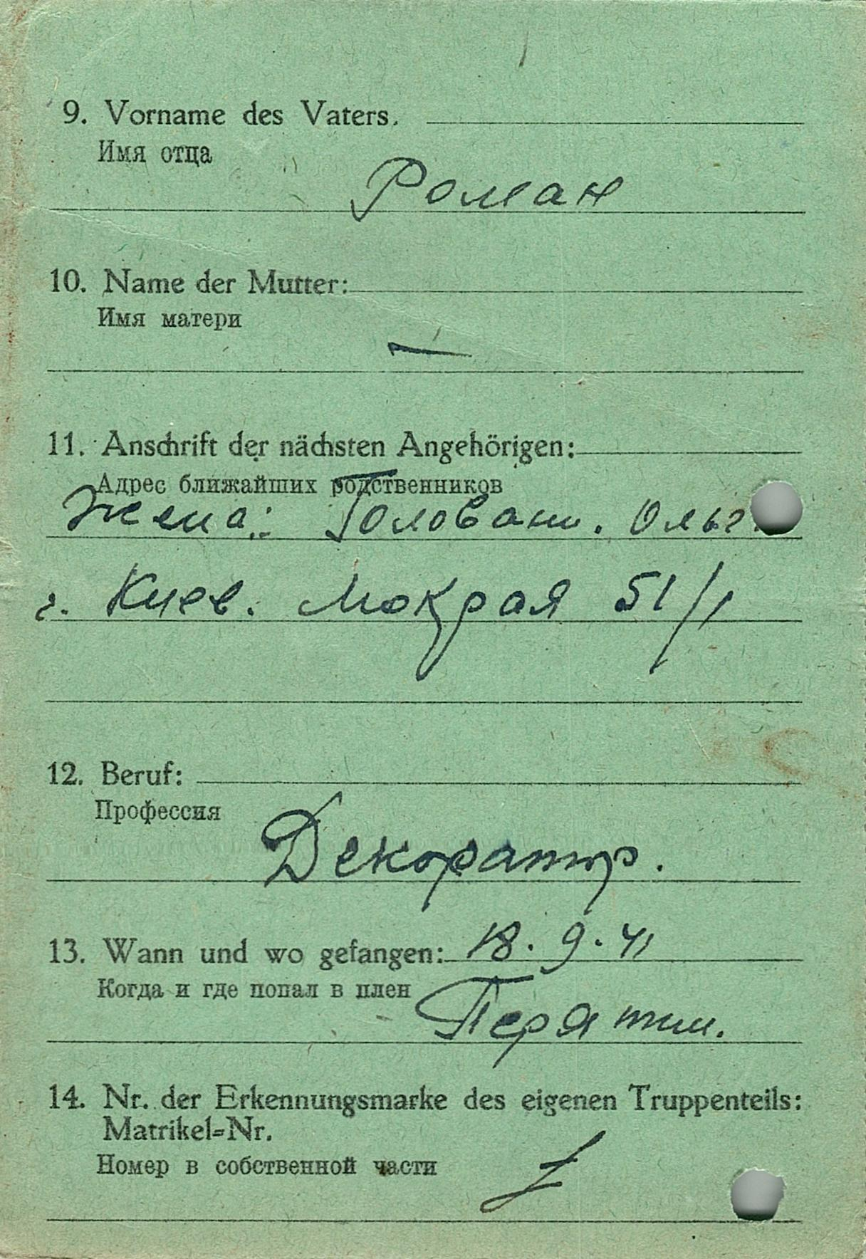 Военнопленные, трофейные карточки. Киевская обл.
