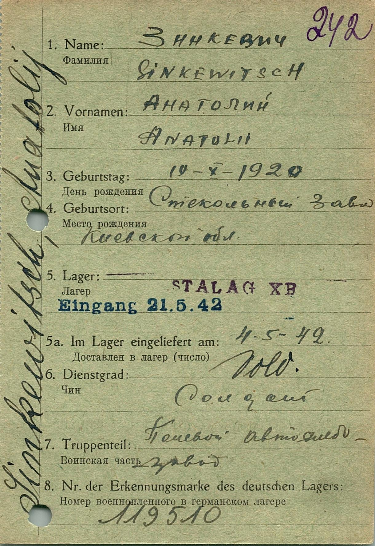 Военнопленные, трофейные карточки. Киевская обл.