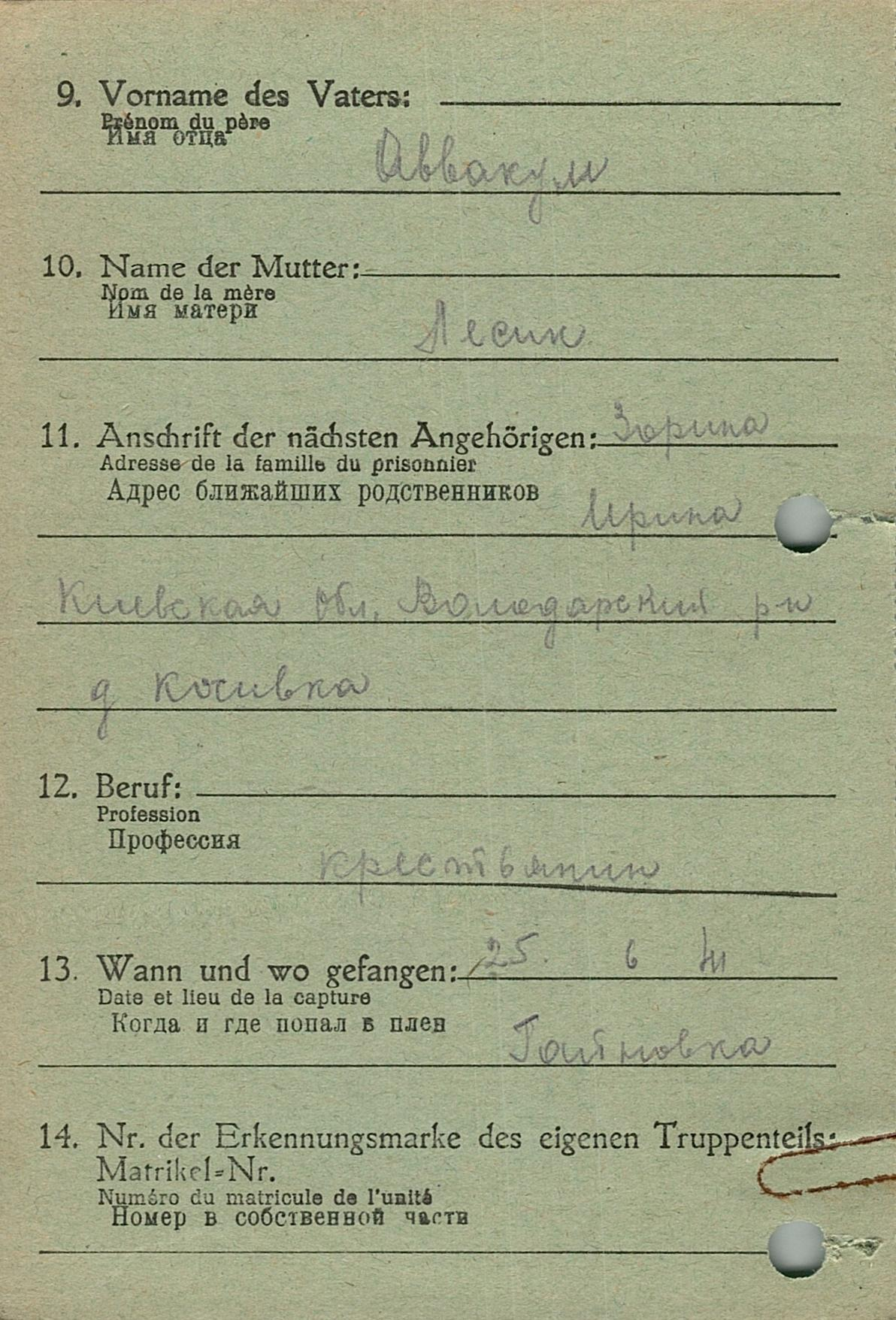 Военнопленные, трофейные карточки. Киевская обл.
