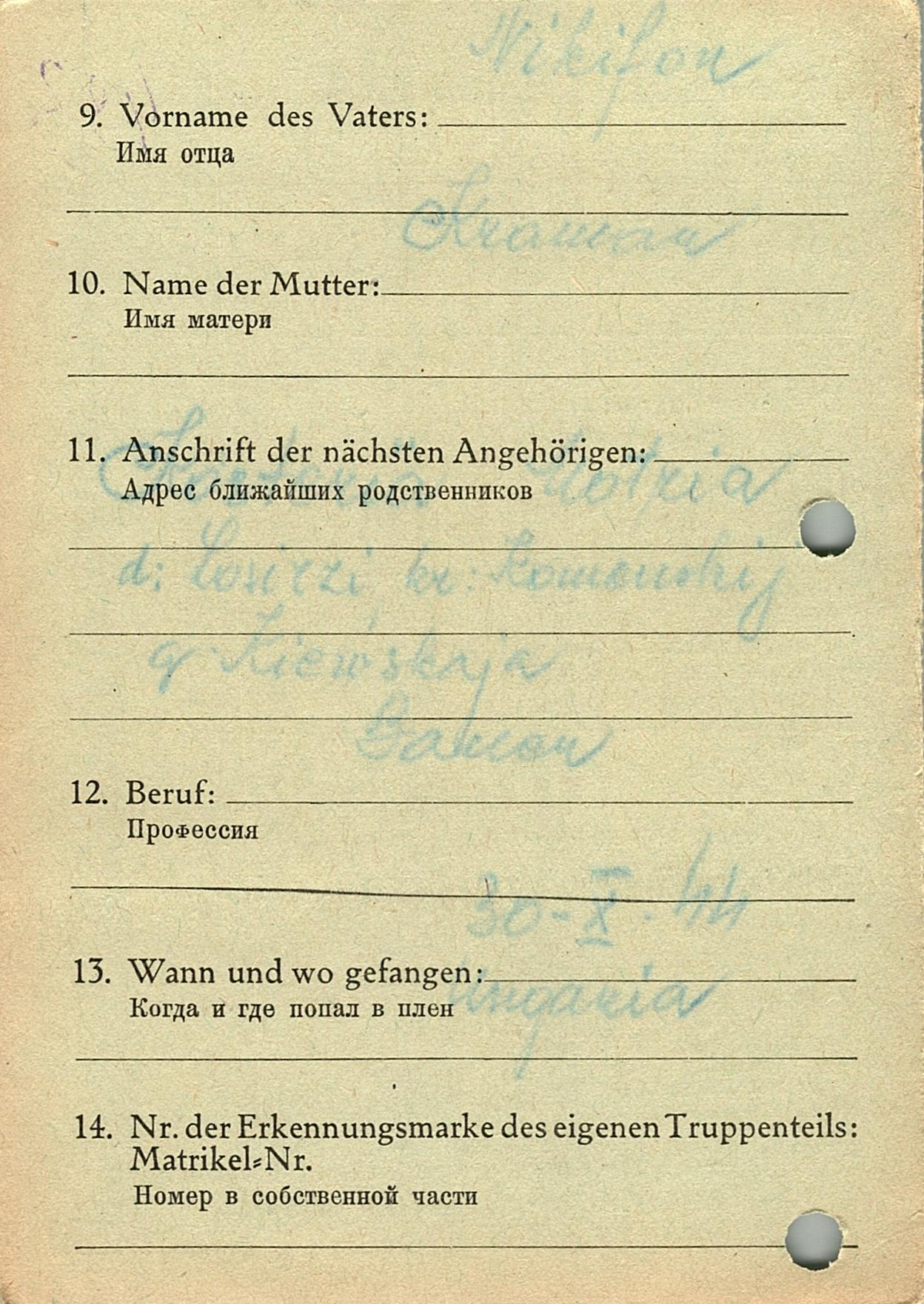 Военнопленные, трофейные карточки. Киевская обл.