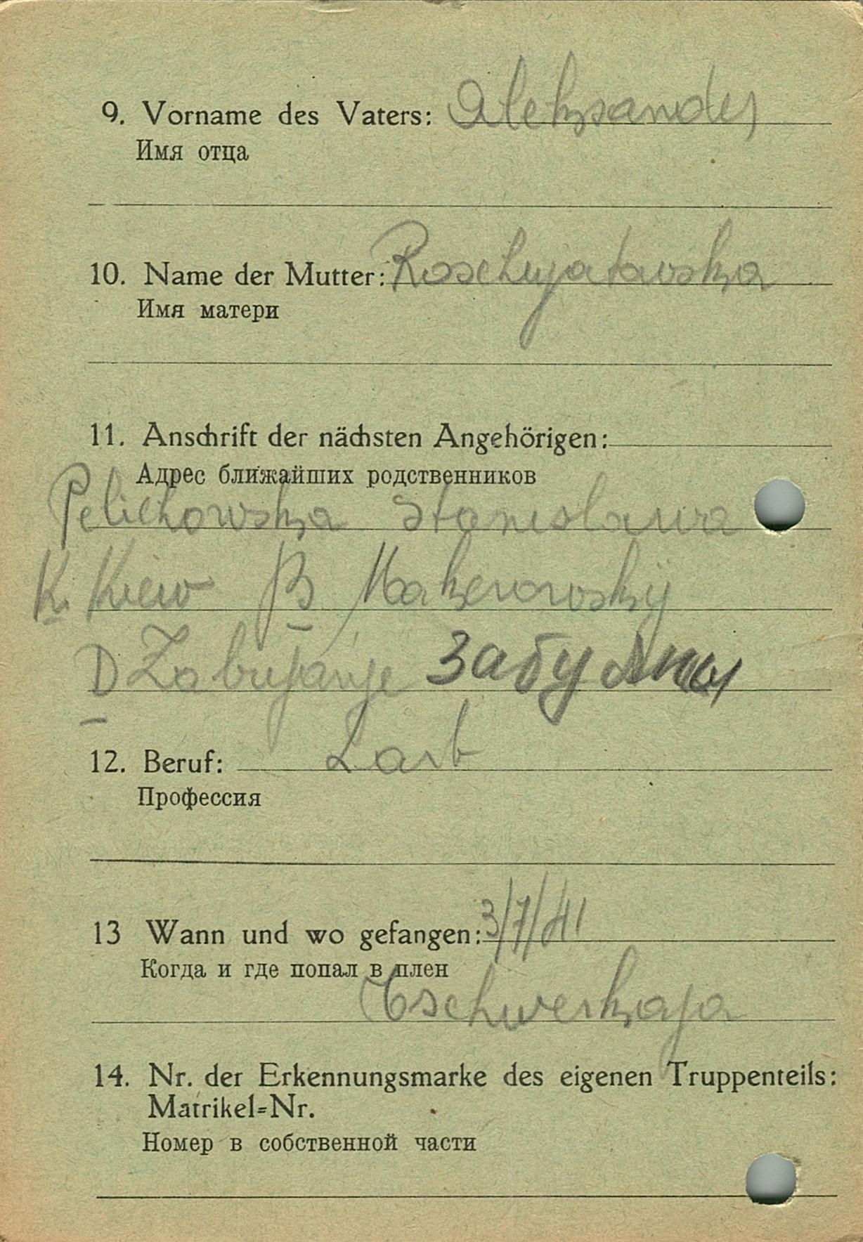 Военнопленные, трофейные карточки. Киевская обл.