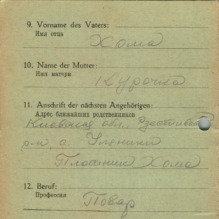 Плотник Иван Хомич, 1920 г. р., Киевская обл. Рядовой, 2 стрелковый полк. Попал в плен 25.06.1941 в Каунасе, шталаг XII O (321).