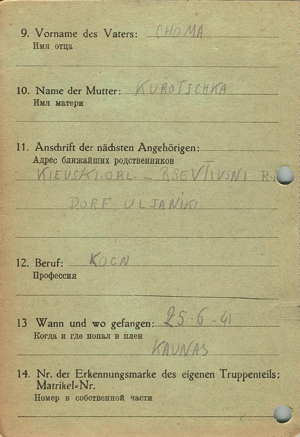 Военнопленные, трофейные карточки. Киевская обл.