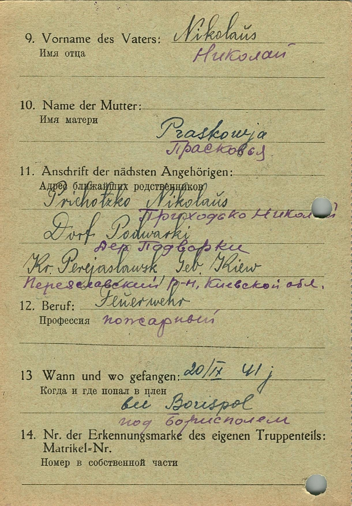 Военнопленные, трофейные карточки. Киевская обл.