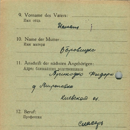 Приходько Пётр Игнатович, 12.07.1904 г. р., Киевская обл, с. Мироновка. Рядовой, 1049 пехотный полк. Попал в плен 19.07.1942 в Ростове, шталаг IV C.