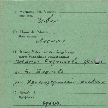 Разников Фёдор Иванович, 16.04.1903 г. р., Орловская обл., с. Большае Тернава. Рядовой пехотного полка. Попал в плен 05.09.1941 в Севске, шталаг VI В.