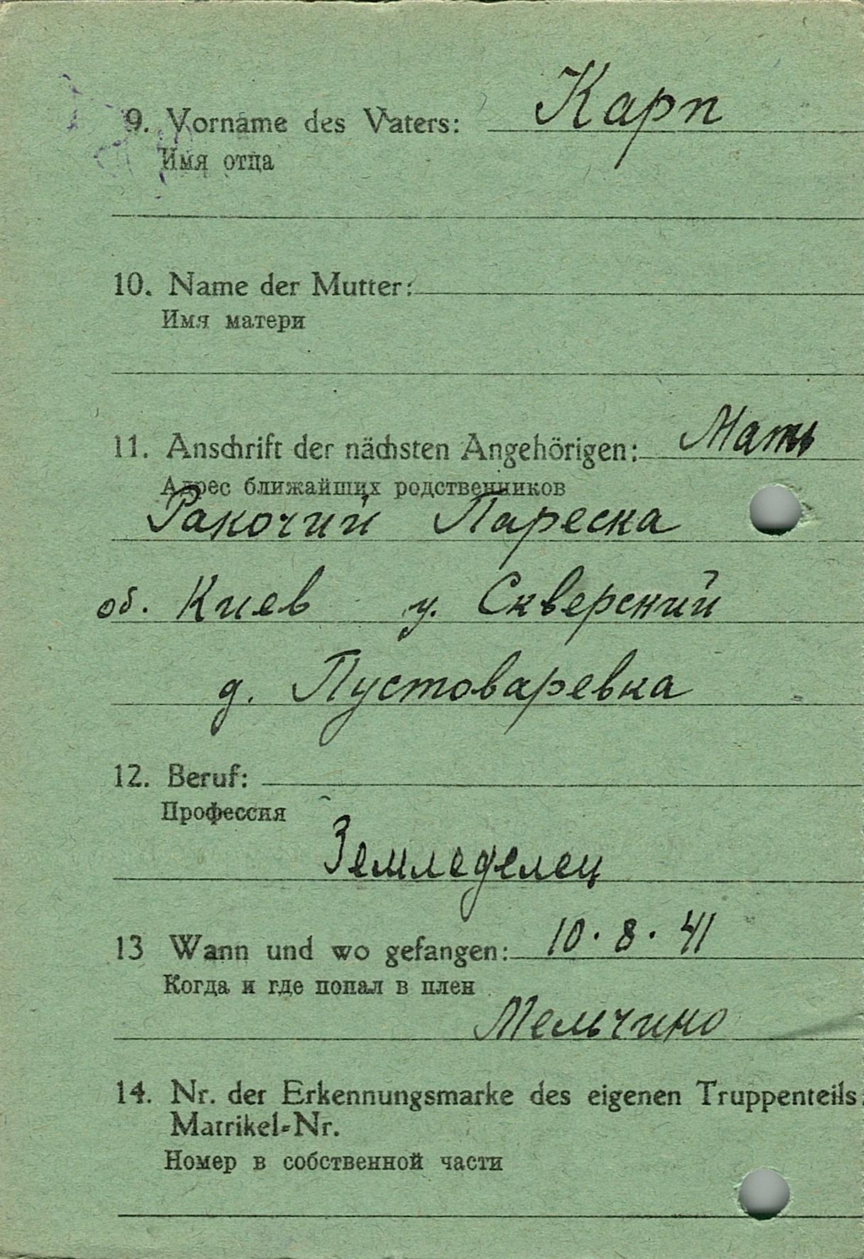 Военнопленные, трофейные карточки. Киевская обл.