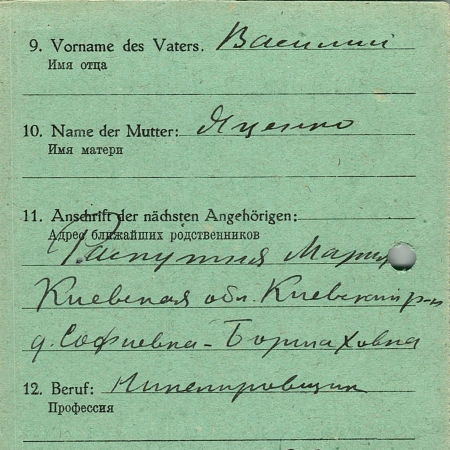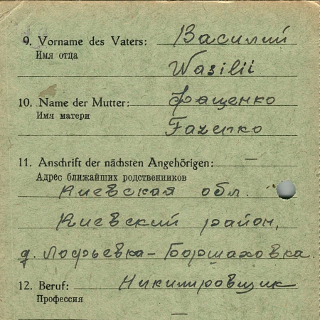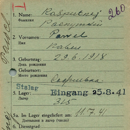 Распутный Павел Васильевич, 29.06.1918 г. р, с. Софиевская Борщаговка. Рядовой, 17 пехотный полк. Попал в плен 25.06.1941 г. в Литве, шталаг ІІ Д.