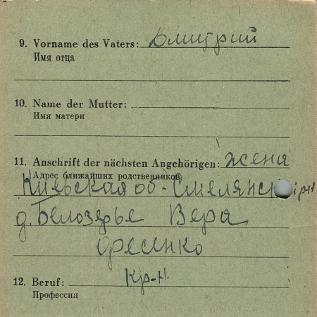 Резинченко Корней Дмитриевич, 18.03.1912 г.р., г. Киев. Гражданский. Попал в плен 25.08.1944 в Симне, шталаг 326.