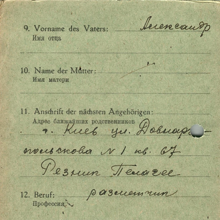 Резник Владимир Александрович, 1910 г. р., г. Киев. Рядовой, 44 стрелковый полк. Попал в плен 12.08.1941 в Пятихатках, шталаг 303.