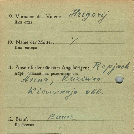 Релях Владимир Григориевич, 15.07.1900 г. р, Киевская обл., с. Кузивка. Рядовой, 1045 полк. Попал в плен 20.09.1941 в Борисполе, шталаг Х В.