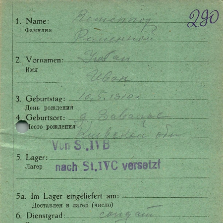 Ременной Иван Борисович, 10.05.1910 г. р, д. Савелье. Рядовой, 935 пехотный полк. Попал в плен 18.02.1942 в Орле, шталаг IV C.