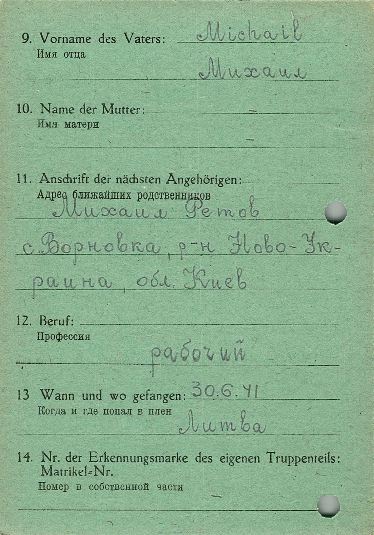 Военнопленные, трофейные карточки. Киевская обл.