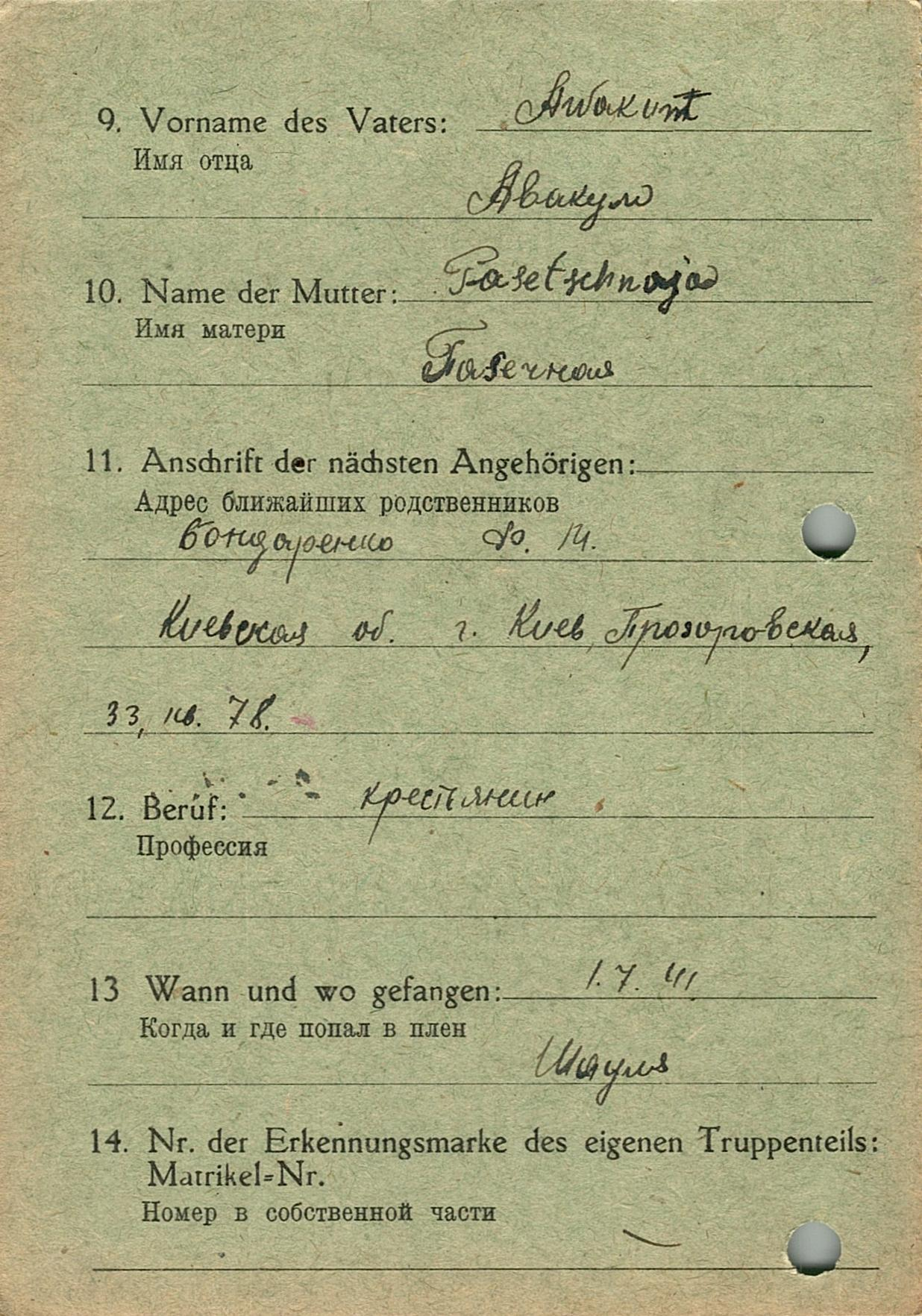 Военнопленные, трофейные карточки. Киевская обл.