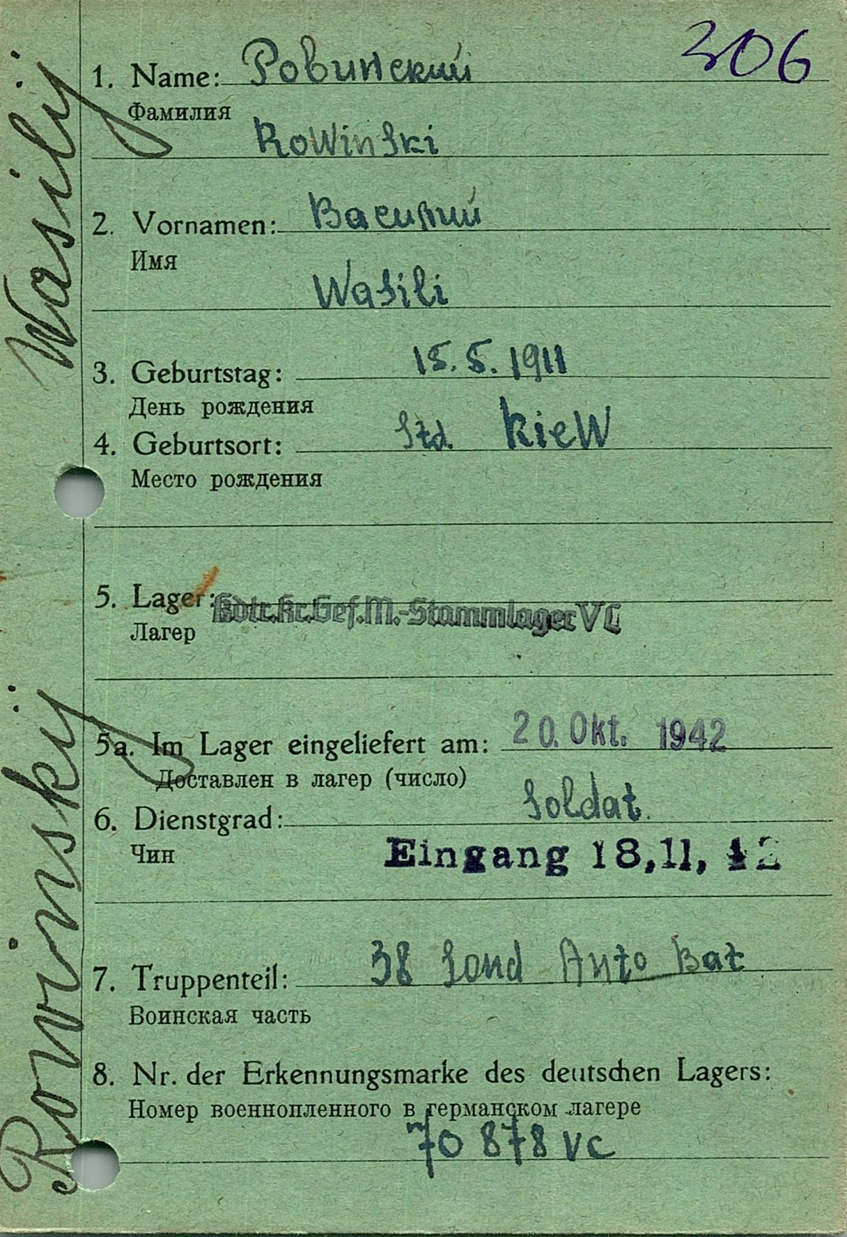 Военнопленные, трофейные карточки. Киевская обл.