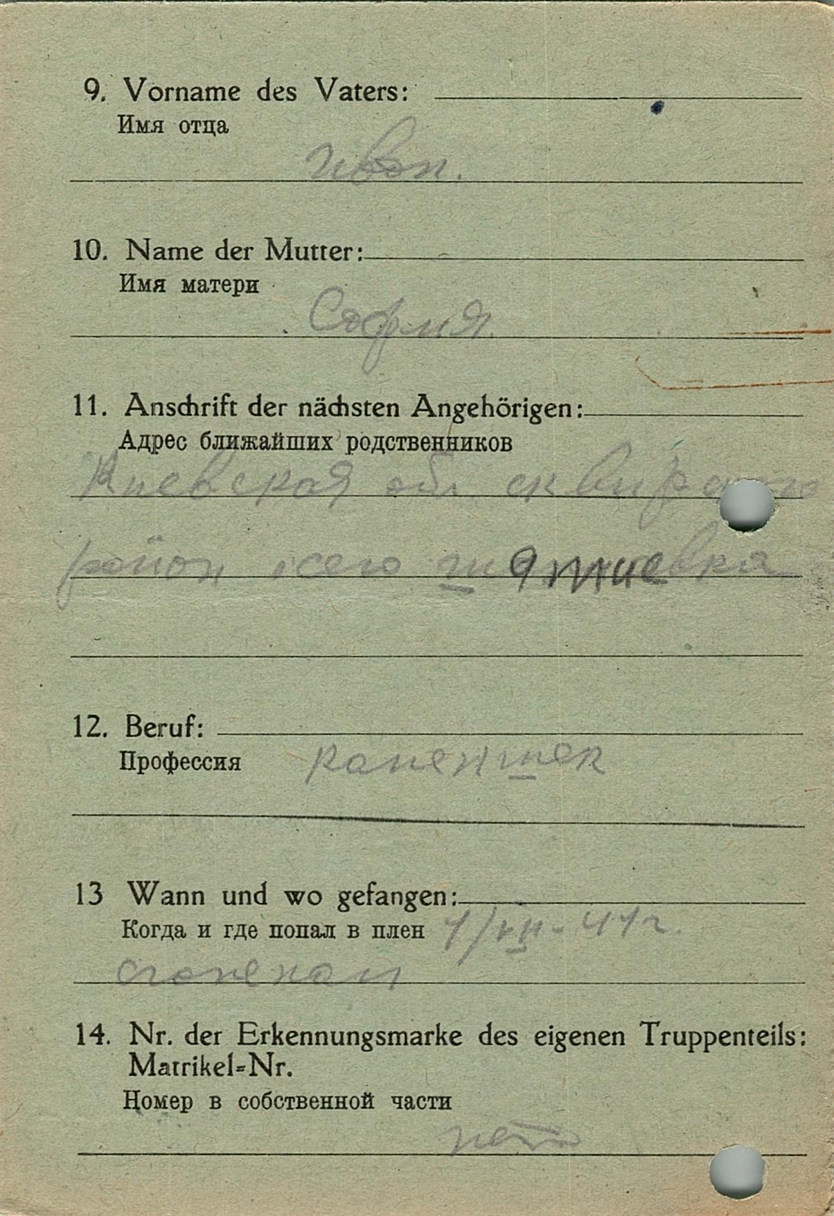 Военнопленные, трофейные карточки. Киевская обл.