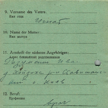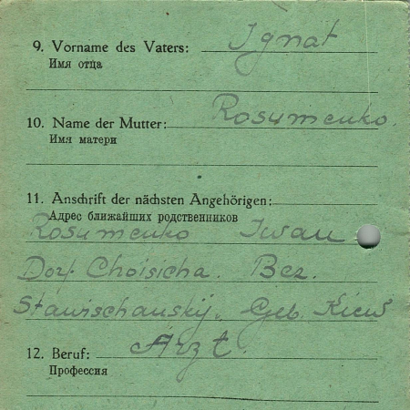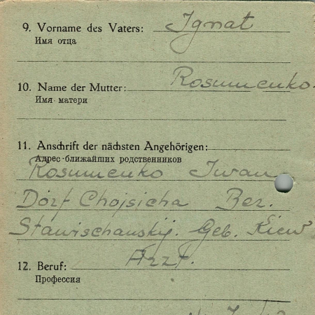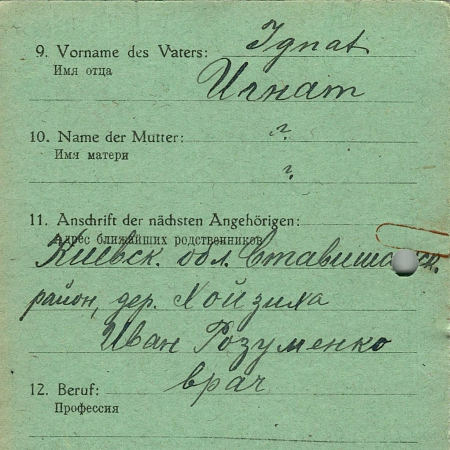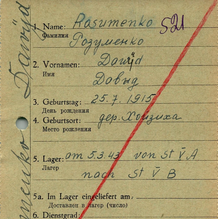 Розуменко Давид Игнатович, 25.07.1915 г. р., д. Хойзиха. Рядовой, 97 стрелковый полк. Попал в плен 14.07.1942 в Ржеве, шталаг V В.