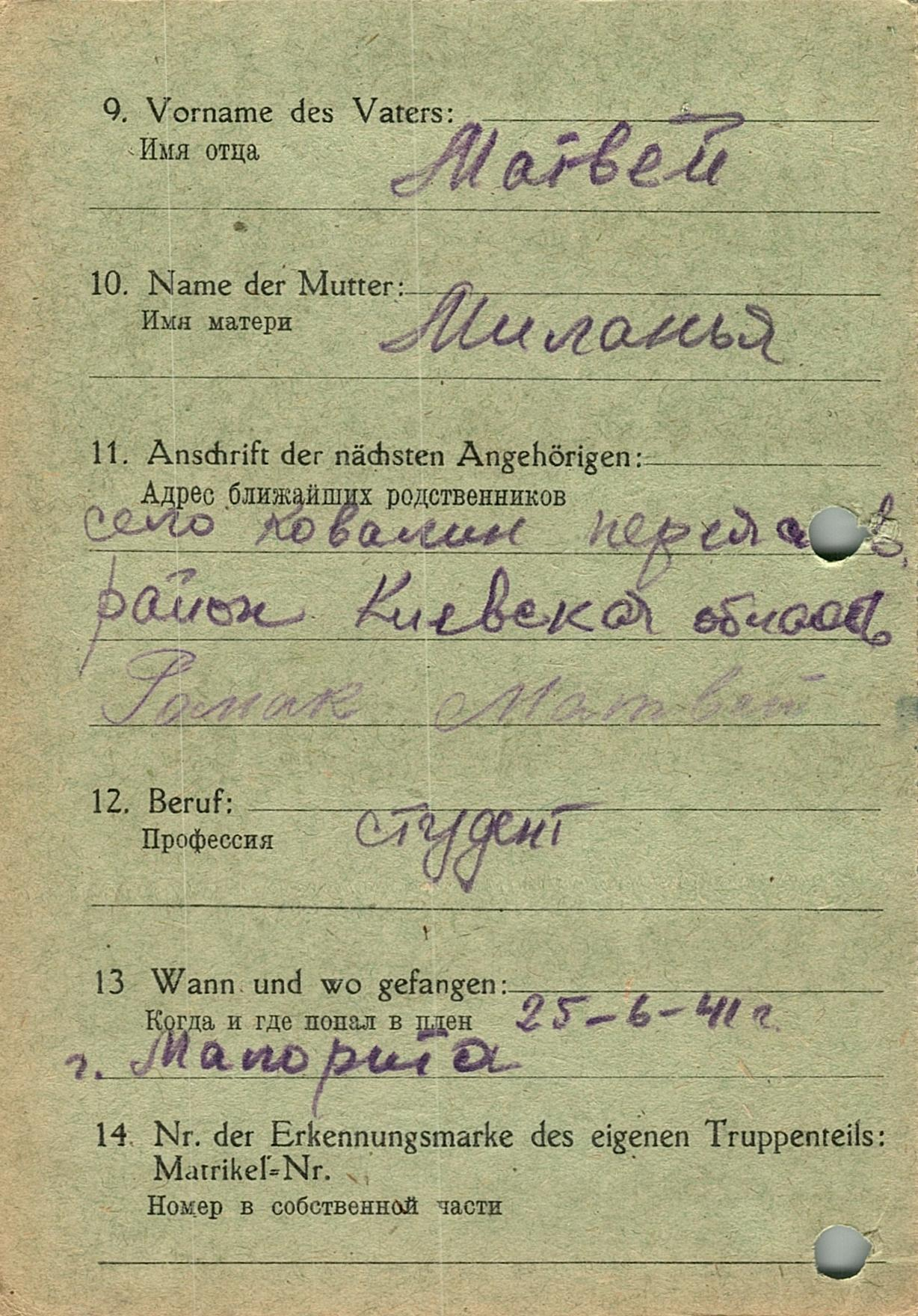 Военнопленные, трофейные карточки. Киевская обл.