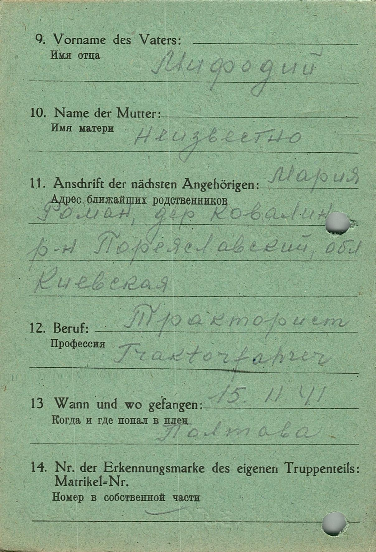 Военнопленные, трофейные карточки. Киевская обл.