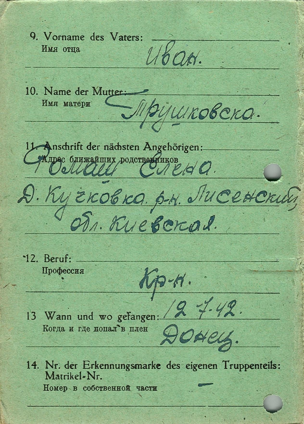 Военнопленные, трофейные карточки. Киевская обл.