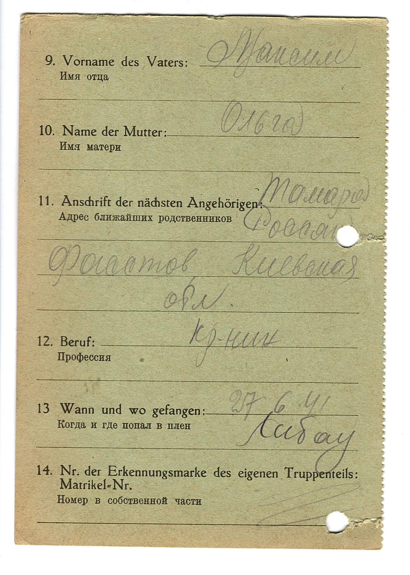 Военнопленные, трофейные карточки. Киевская обл.