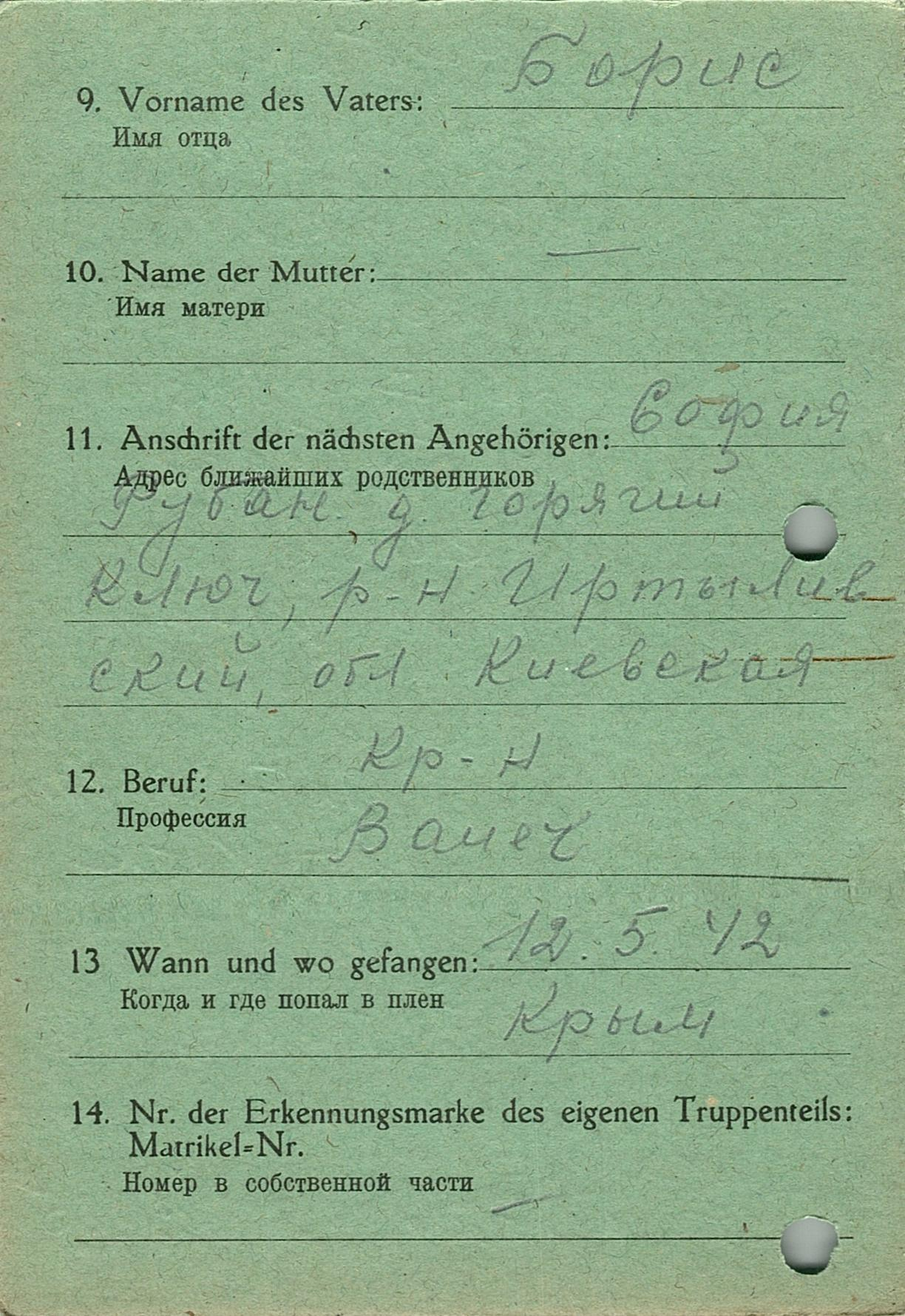 Военнопленные, трофейные карточки. Киевская обл.