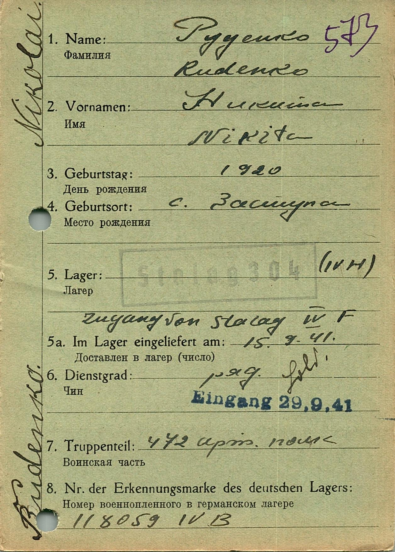 Военнопленные, трофейные карточки. Киевская обл.