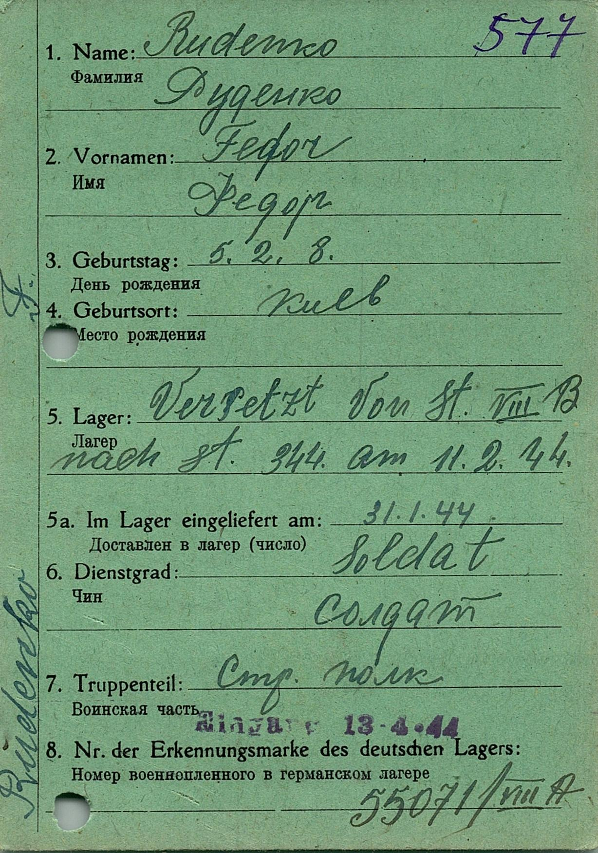 Военнопленные, трофейные карточки. Киевская обл.