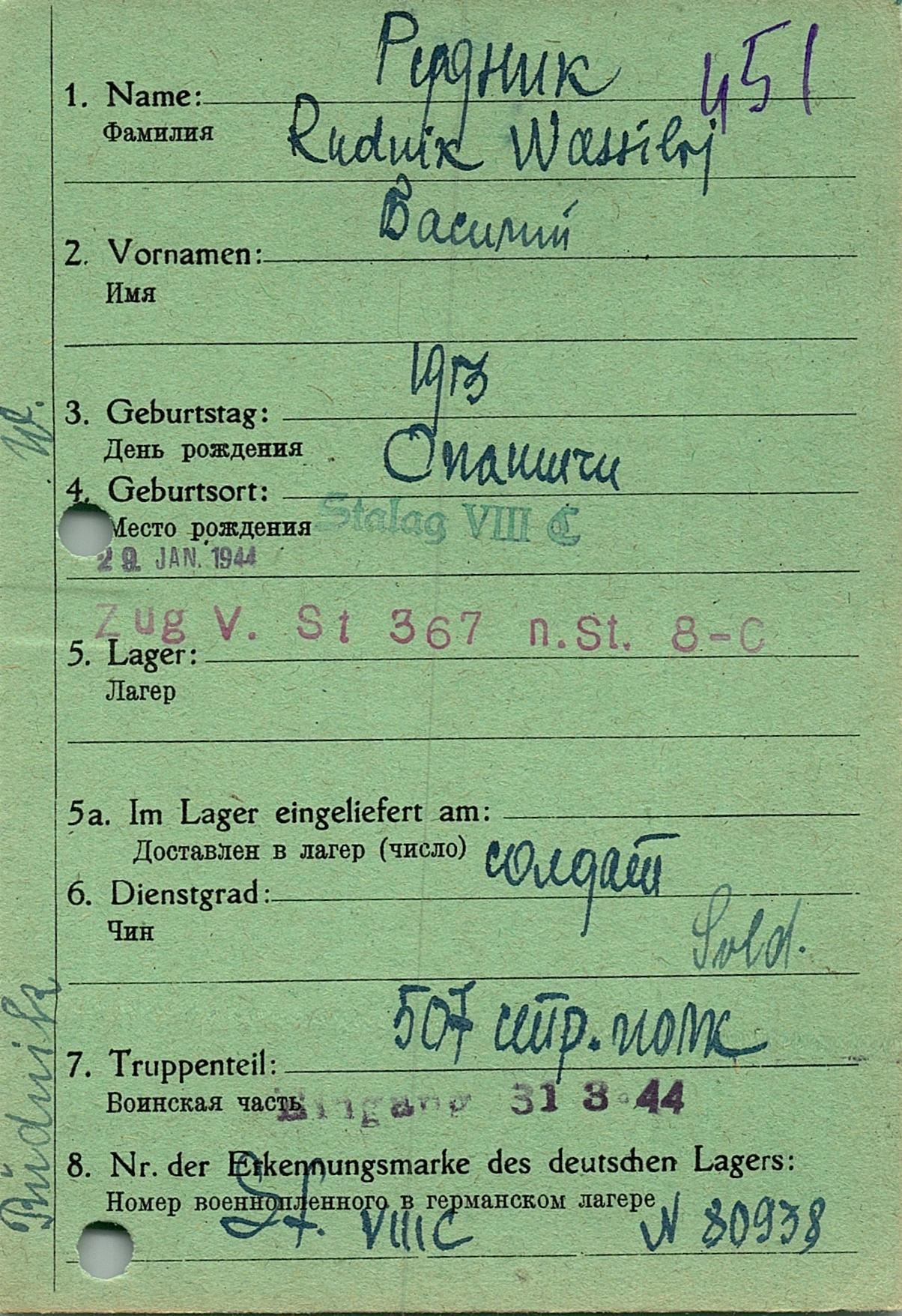 Военнопленные, трофейные карточки. Киевская обл.