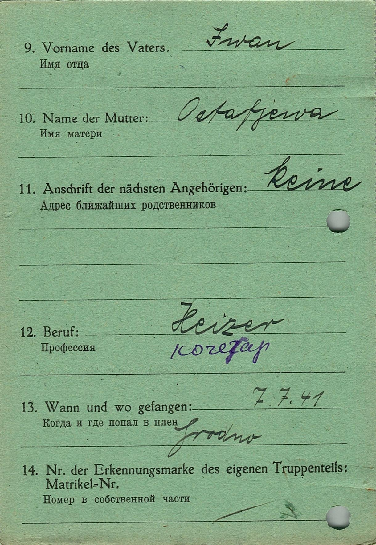 Военнопленные, трофейные карточки. Киевская обл.