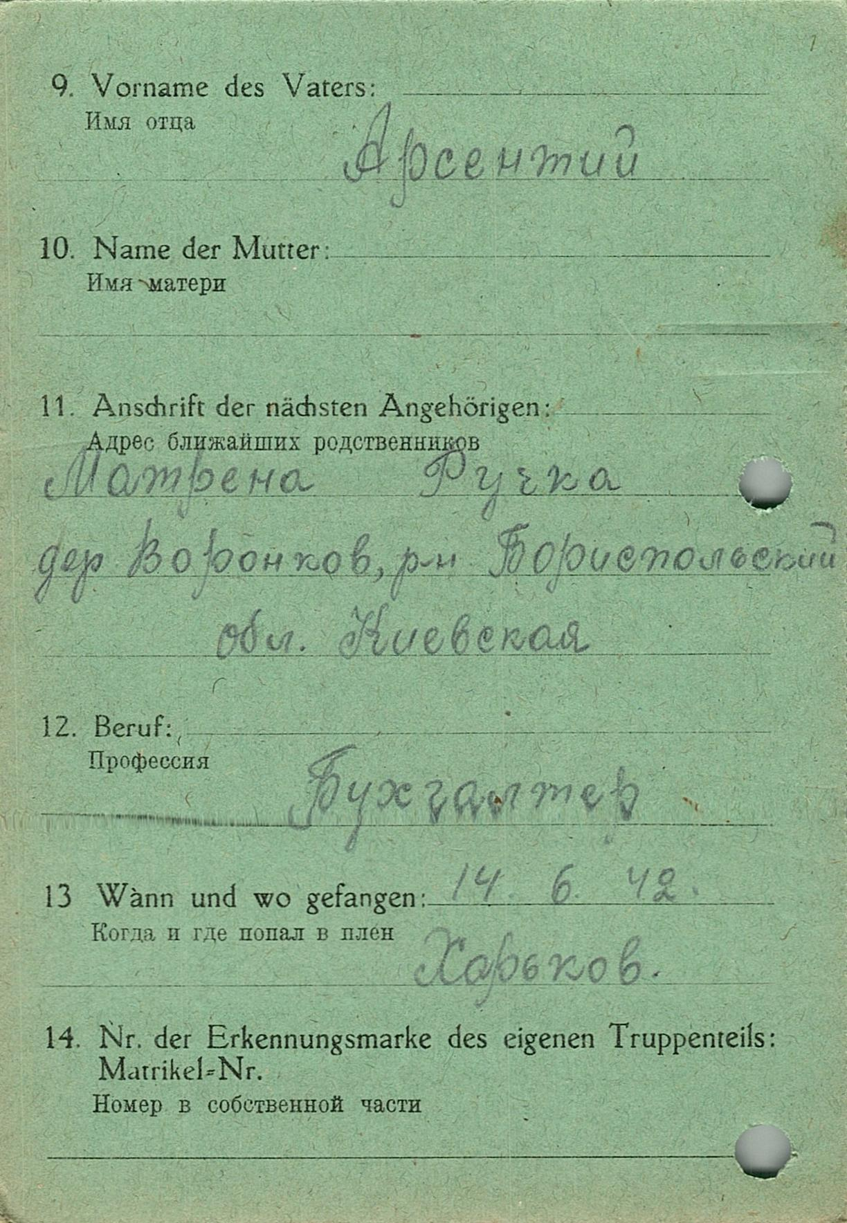Военнопленные, трофейные карточки. Киевская обл.