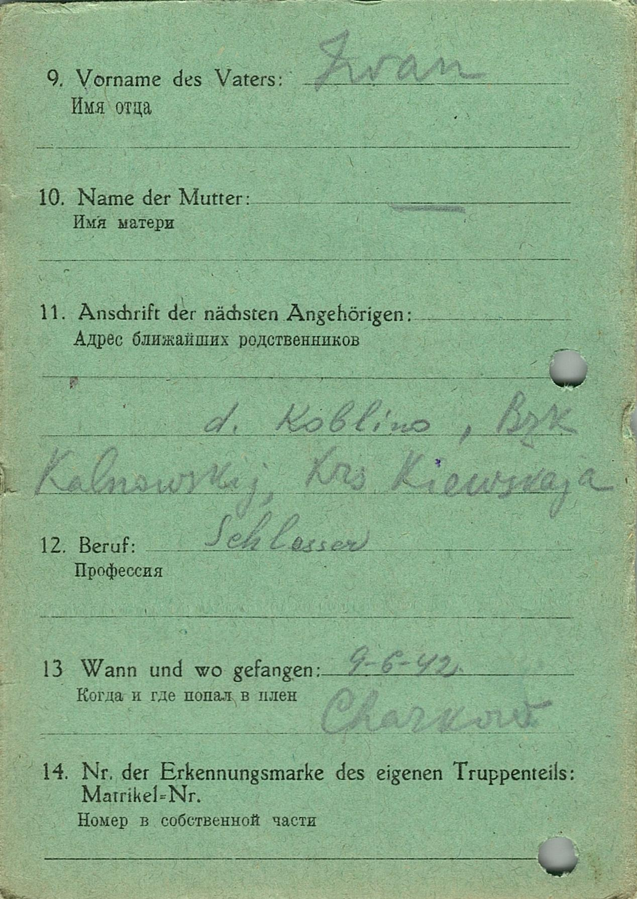 Военнопленные, трофейные карточки. Киевская обл.