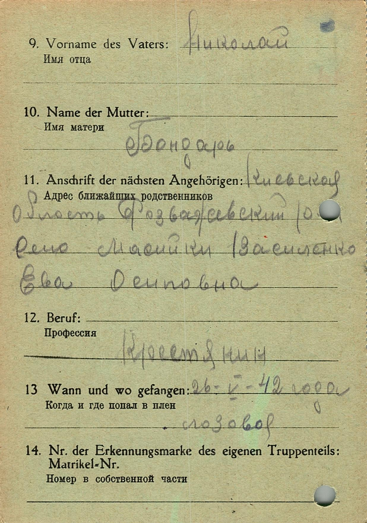 Военнопленные, трофейные карточки. Киевская обл.