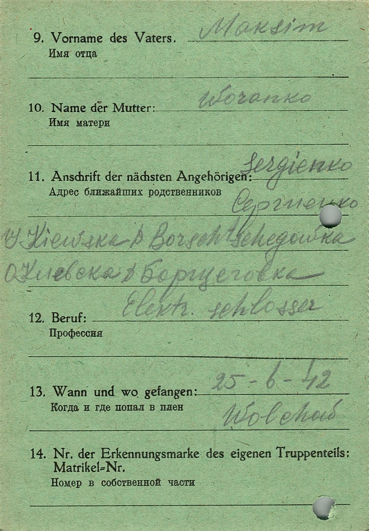 Военнопленные, трофейные карточки. Киевская обл.
