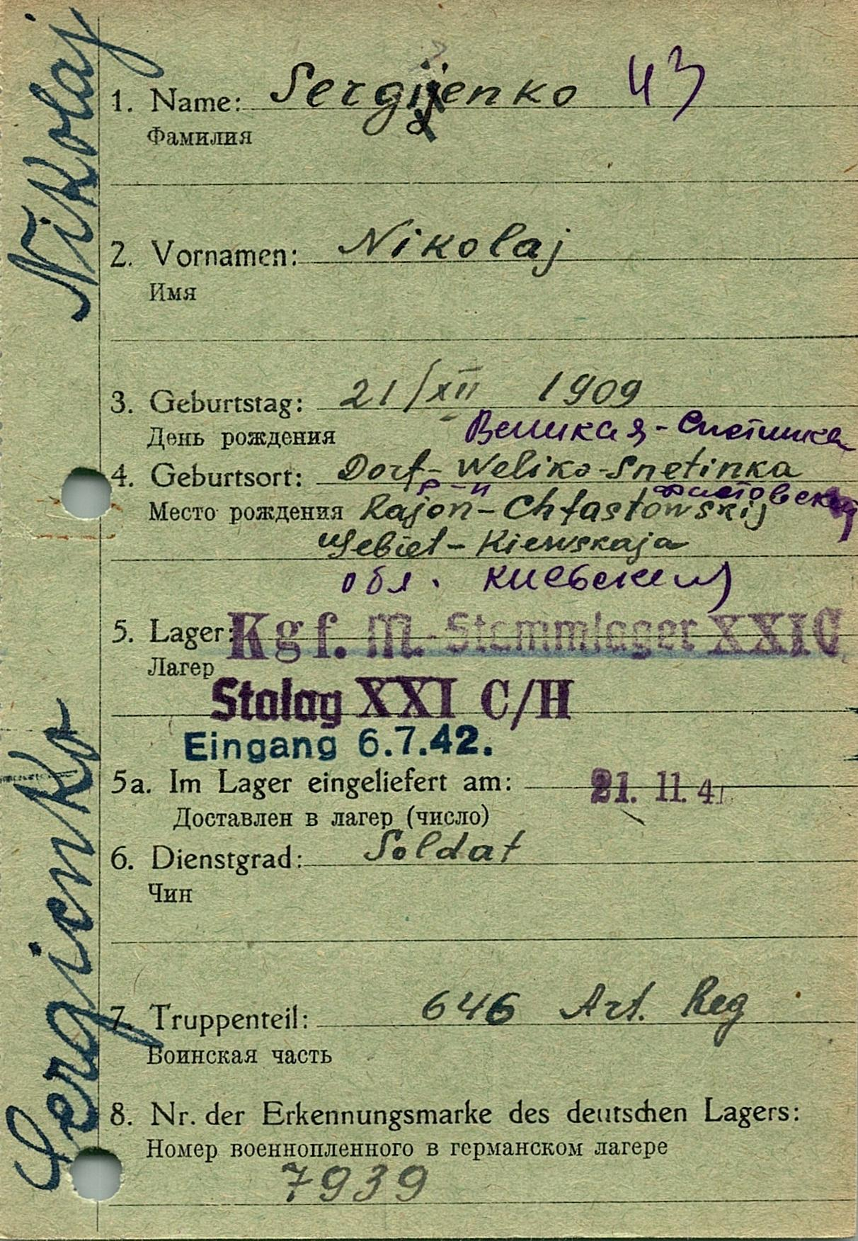 Военнопленные, трофейные карточки. Киевская обл.