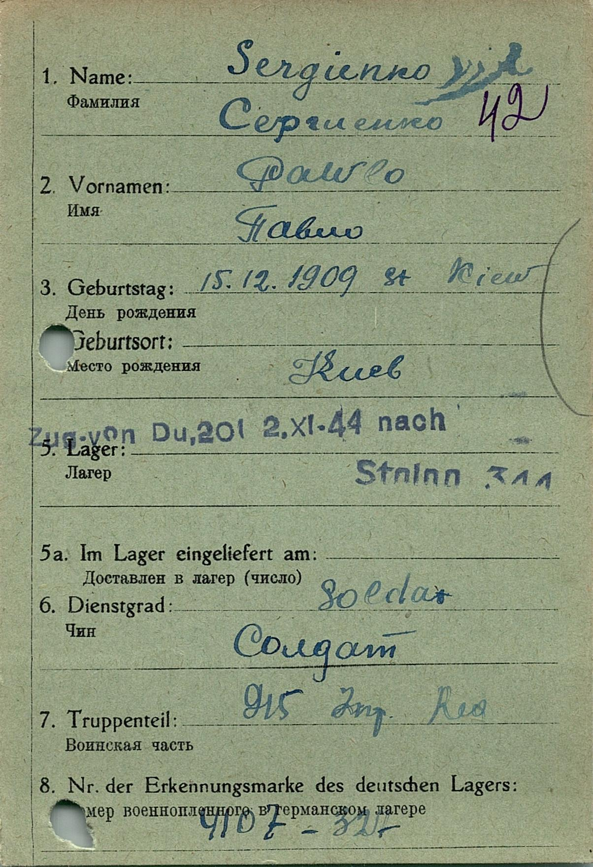 Военнопленные, трофейные карточки. Киевская обл.