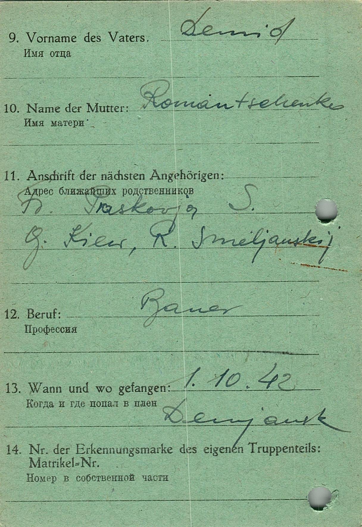 Военнопленные, трофейные карточки. Киевская обл.
