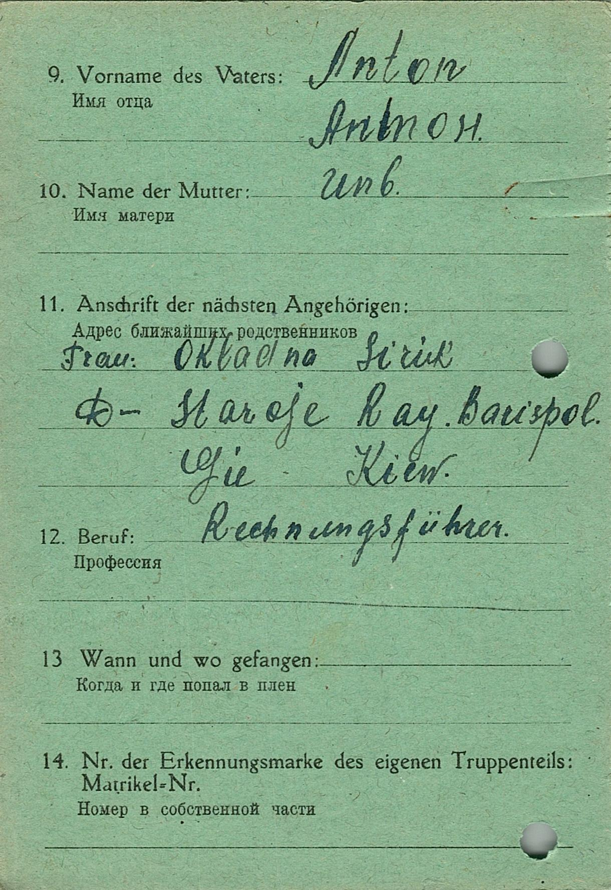 Военнопленные, трофейные карточки. Киевская обл.