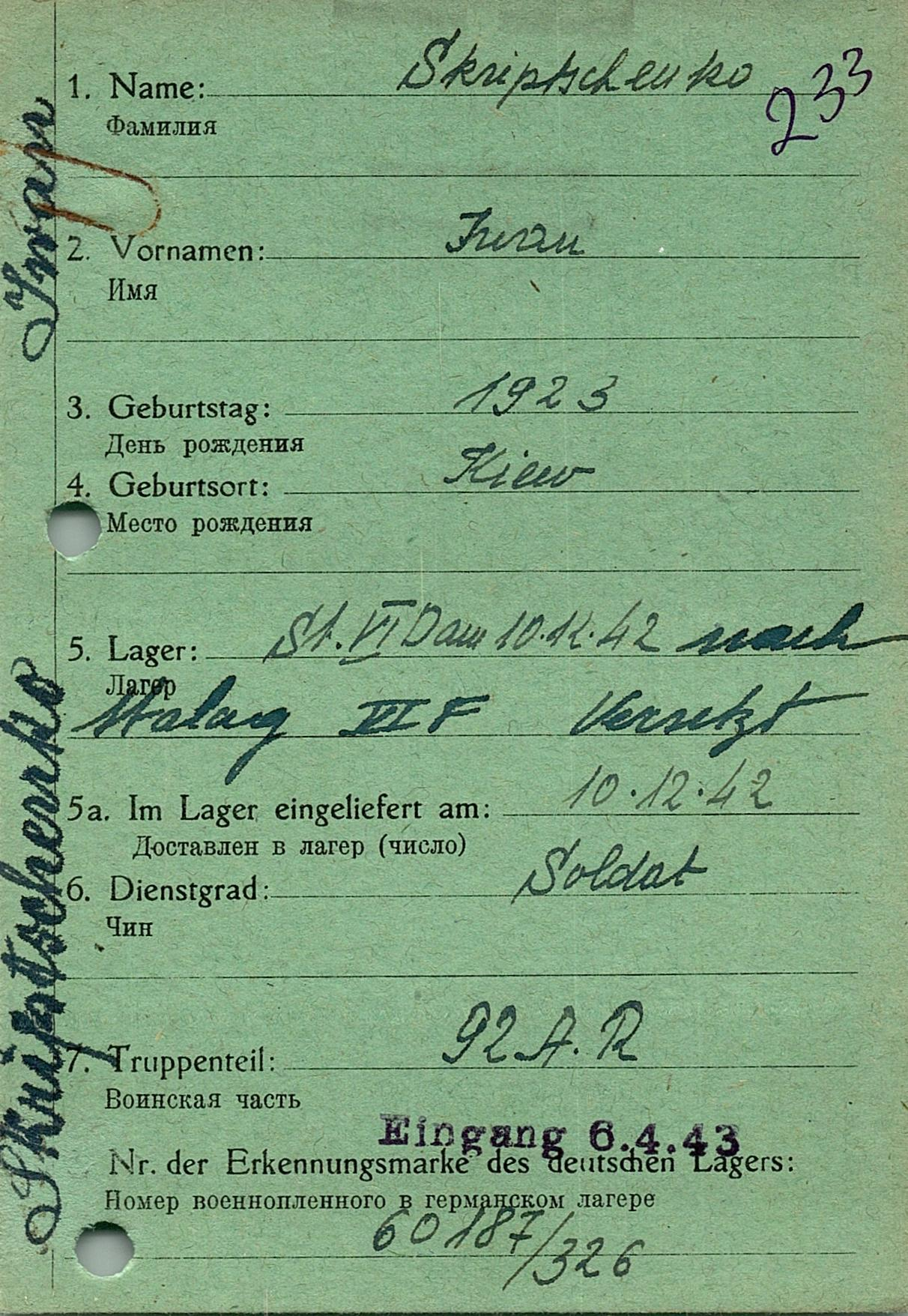 Военнопленные, трофейные карточки. Киевская обл.
