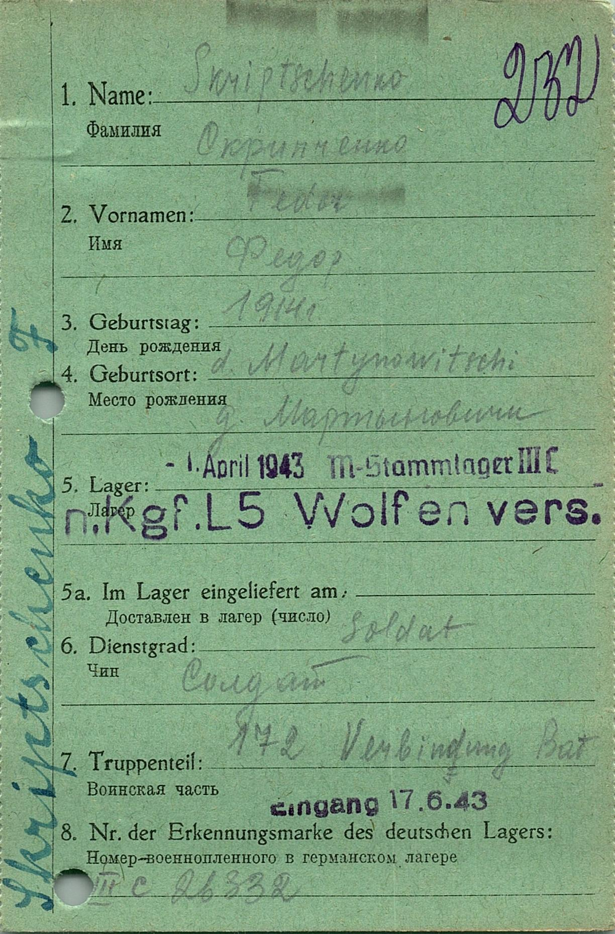 Военнопленные, трофейные карточки. Киевская обл.