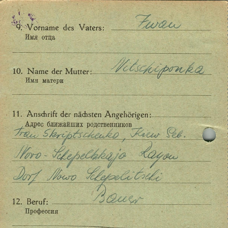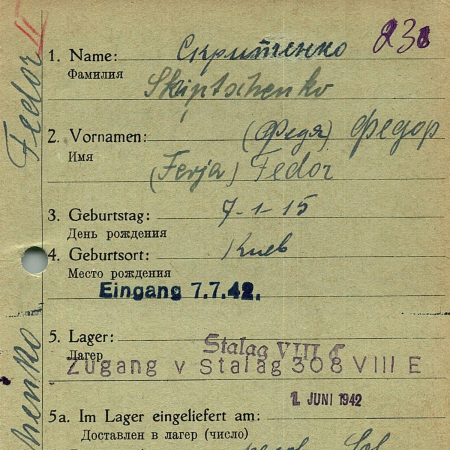 Скрипченко Фёдор Иванович, 07.01.1915 г. р., с. Мартыновичи. Рядовой, 817 пехотный полк, 1 батальйон. Попал в плен 26.08.1941 г. в шталаг 316.
