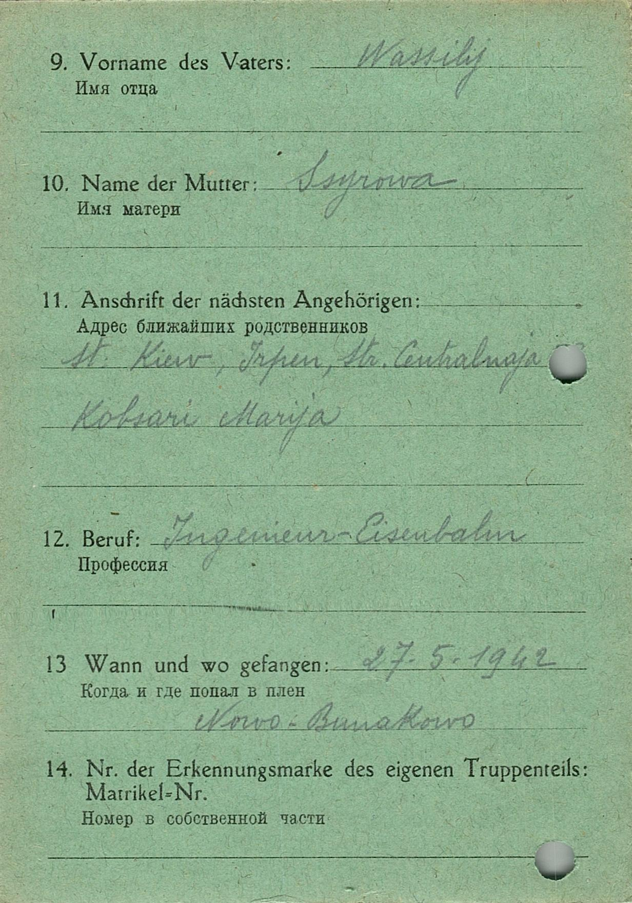 Военнопленные, трофейные карточки. Киевская обл.